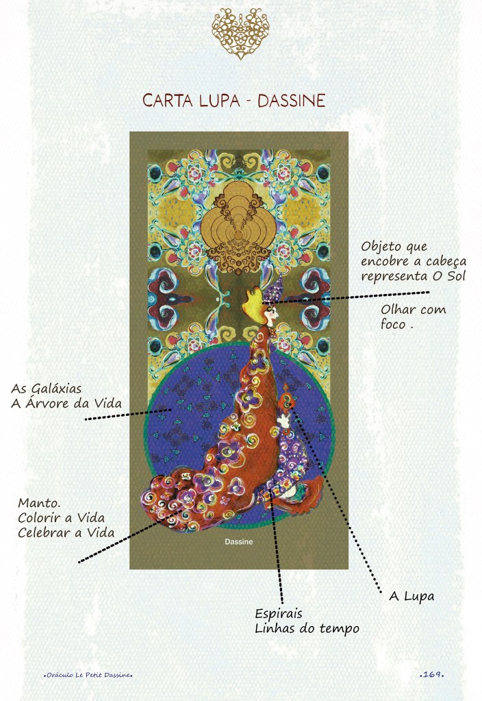 Carta OO – DASSINE (A LUPA). Quando ela aparece no jogo, sempre terá que adicionar mais uma carta. Significa que existe algo além que deverá ser observado com mais detalhe e precisão. É interessante deixar uma pergunta em aberto, para que as respostas possam se apresentar.