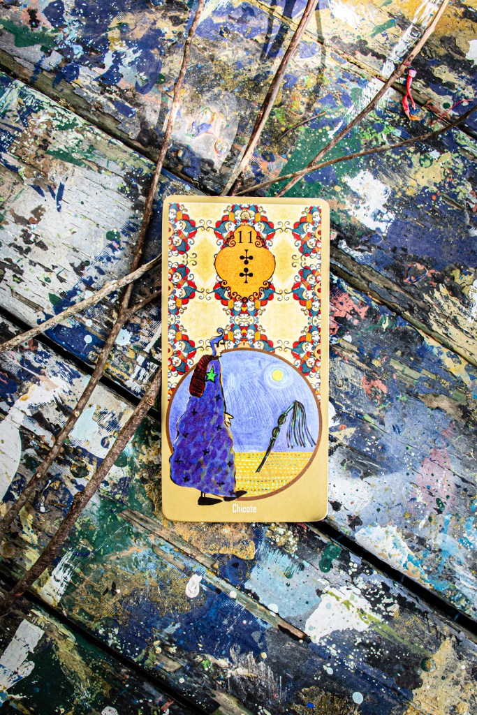 [Carta 11].O CHICOTE. A décima primeira carta, o número 11 [2 de Paus]. Simboliza o desafio do caminho interno. A energia vital encarando todos os questionamentos, desejos e jogos do ego. O número 11 está associado como número mestre (11/22/33/44). 11 é potência ativada para explorar frequências produtivas. Convém estar sempre atento em exercitar a ação de ressignificar os pequenos, grandes ou gigantes julgamentos que visitam o cotidiano.