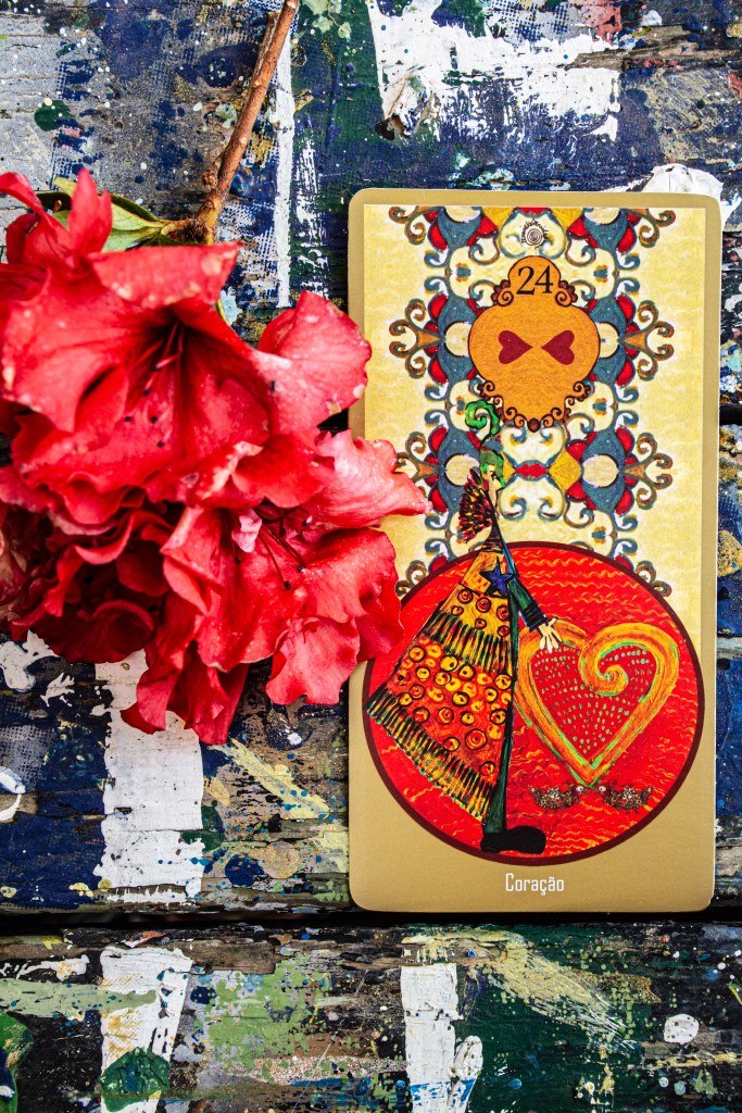[Carta 24]. O CORAÇÃO. A vigésima quarta casa, o número 24 [Valete de Copas e o 2 de Copas]. Simboliza o Amor. Amar, amar e amar imensamente e intensamente. O coração que palpita, expande, chora, ri, abraça, emociona … O sentir amado. O ser amado. O bem querer. O infinito interno. 2 de Copas é Cupido e Psiquê. Valete de Copas diz para ter sempre fé. 24 pulsa em 6[2+4] que é número dos sonhos e desejos .