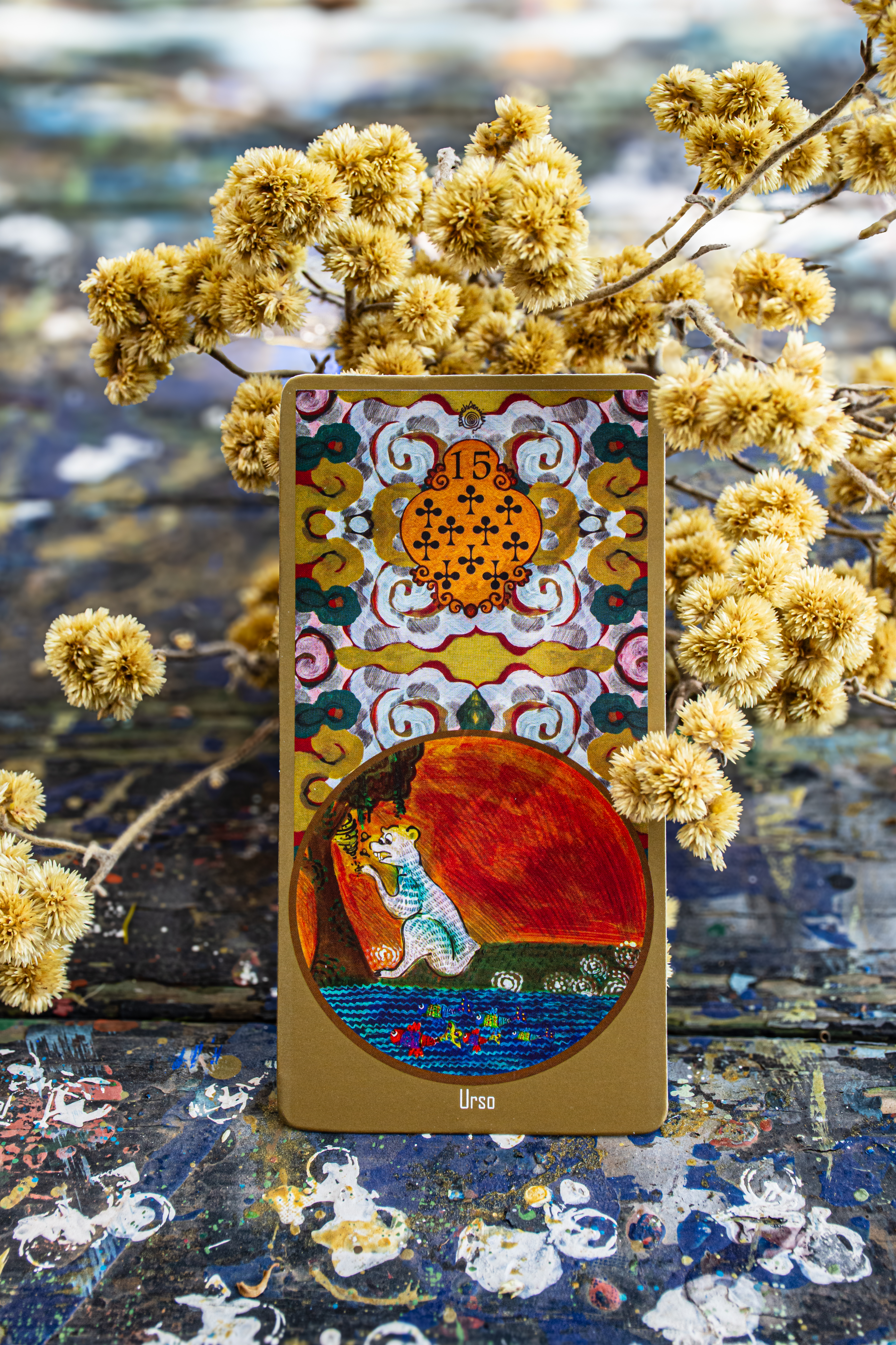 [Carta 15].O URSO. A décima quinta carta, o número 15 [10 de paus]. Simboliza a grandeza. Quando nos inteiramos que temos força e capacidade armazenadas. Atenção ao gerenciamento e distribuição destas grandezas. Convém se apoiar em um sábio equilíbrio, para não ceder aos impulsos do poder e acumular energias em excesso. 15 é sedução, mas, também possui em frequência a camada 6 [1+5] que é coração. O suavizar ao se absorver da paisagem.