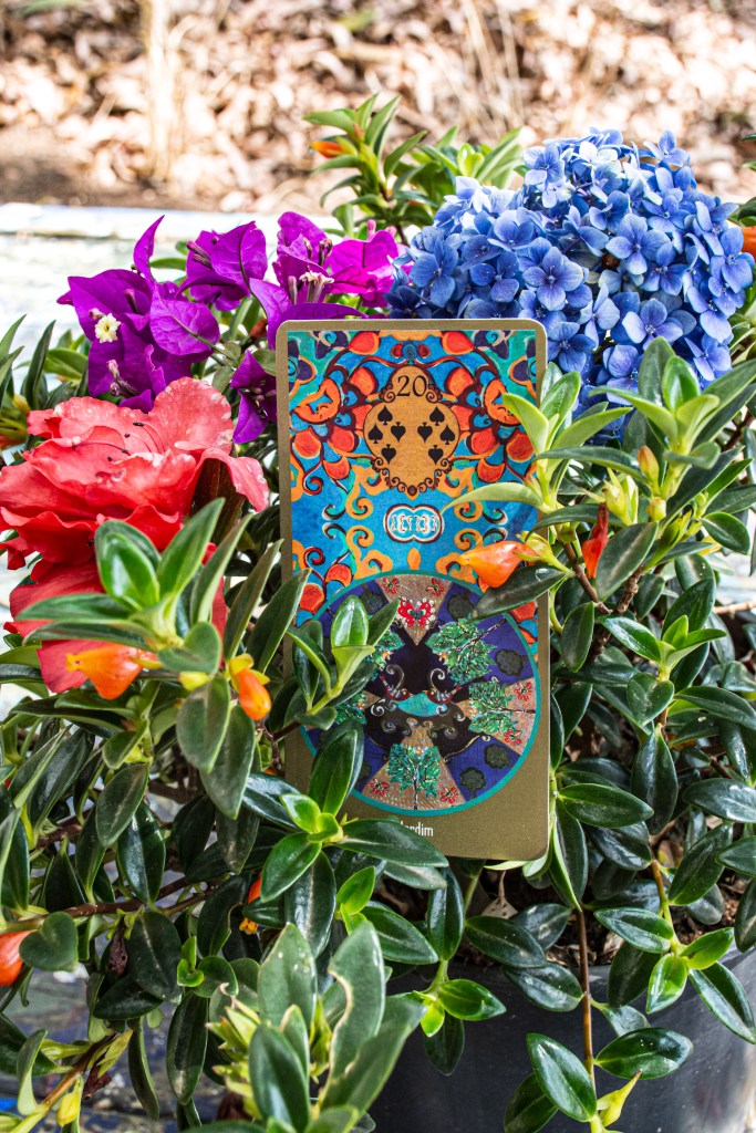 [Carta 20].O JARDIM. A vigésima carta, o número 20[8 de Espadas]. Simboliza a comunicação. Um jardim pode ser constelações, planetas, países, cidades, casas, seres de todas as espécies e formas. O ecossistema em todas as direções com as surpreendentes camadas e variações dos “Efeitos borboleta”. Palavra é ouro e daí nosso diário conviver – o exercício constante entre limite e expansão da composição que forma o existir. 8 de espadas alerta para não dar asas aos medos. 20 reduzido ao número [2] vibra com o mundo da imaginação e dos sonhos-desejos.