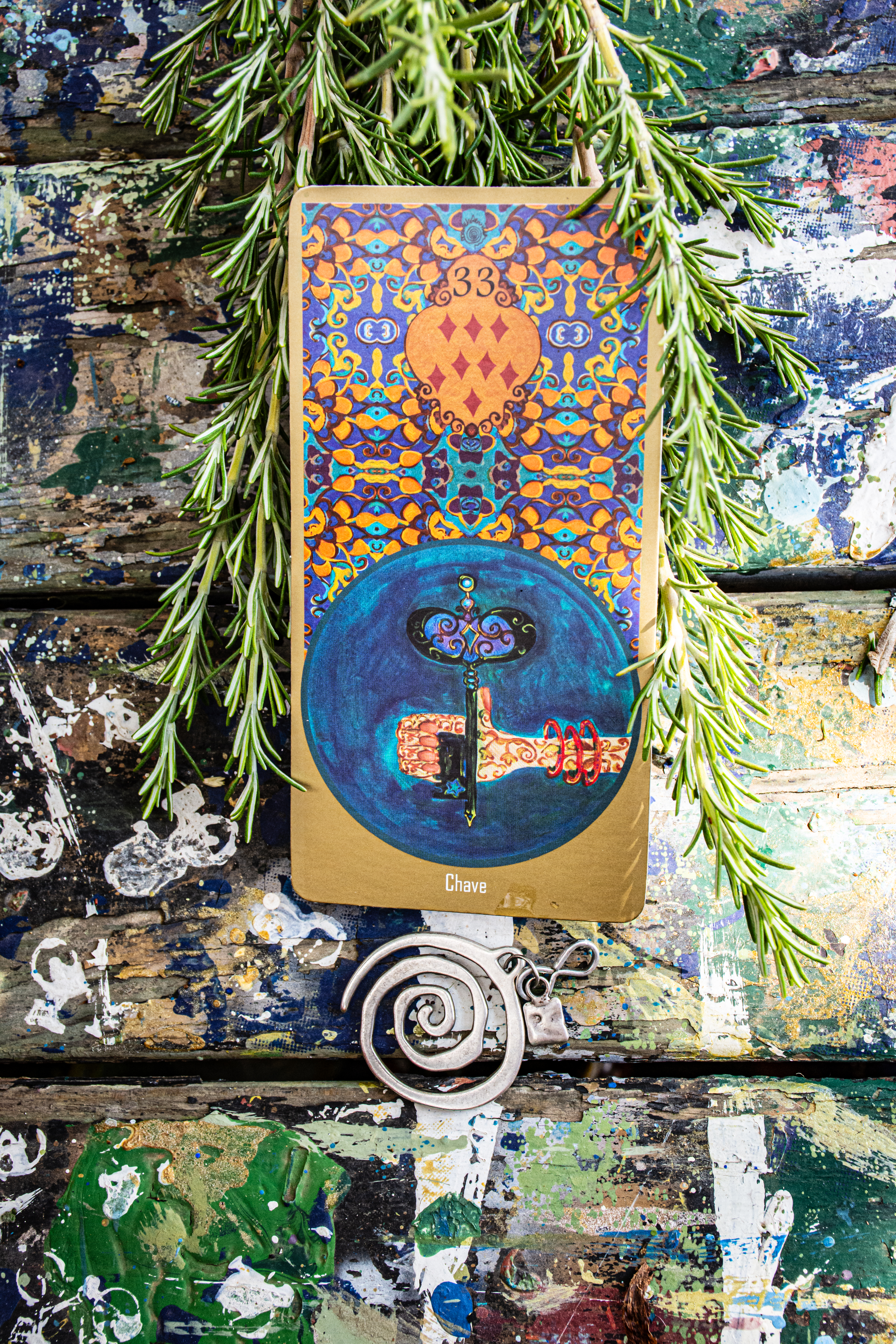 [Carta 33]. A CHAVE. A trigésima terceira carta, o número 33[8 de Ouros]. Simboliza abertura de códigos. A chave está na mão e o poder para decidir tambem.. E quando se abre a porta, o que virá?.33 é número mestre de alta frequência. Vibra 6[3+3], número que correlaciona amor em todos os aspectos.. 8 de Ouros é o aprender fazendo. Dedicar-se com perseverança e foco.