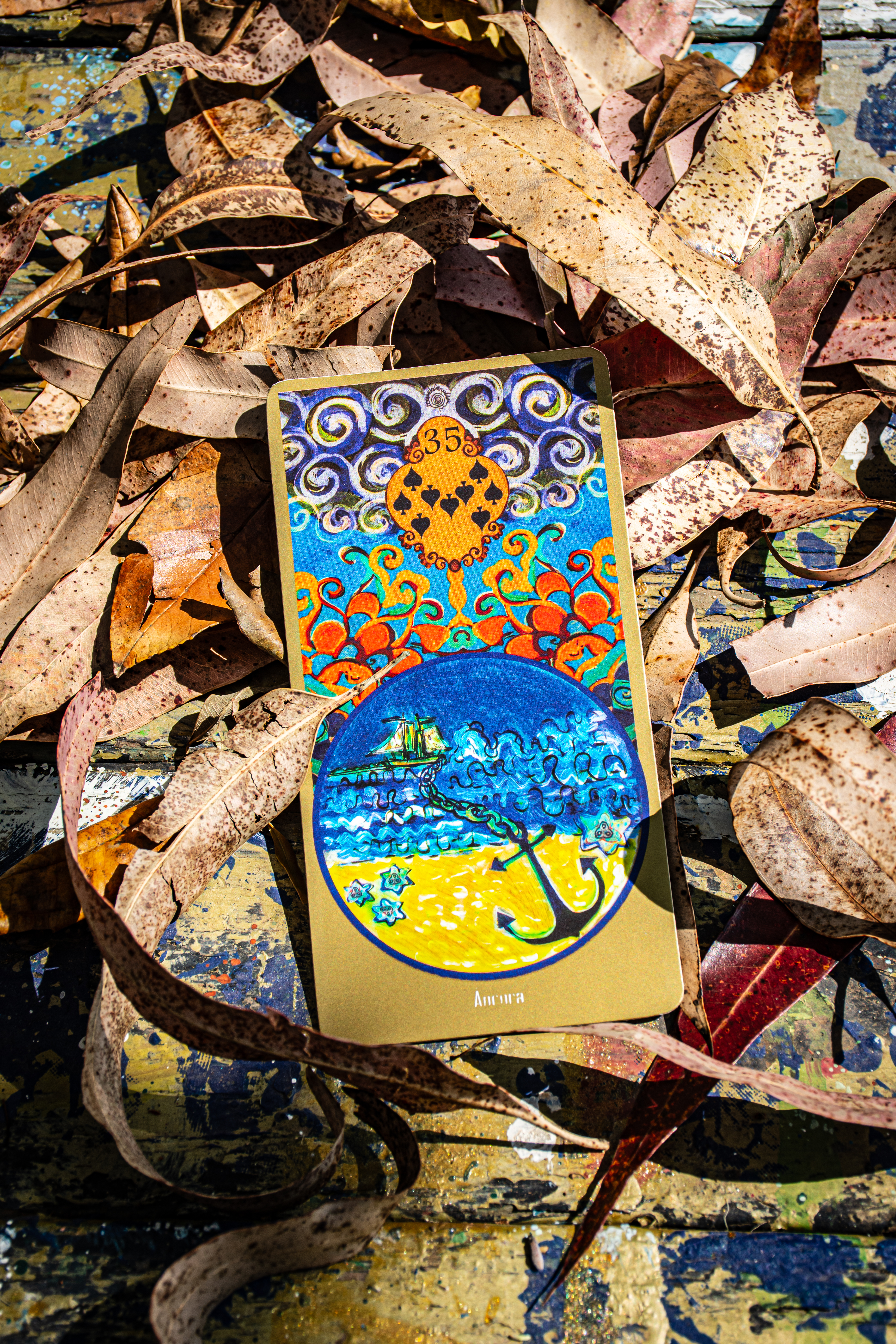 [Carta 35]. A ÂNCORA. A trigésima quinta carta, o número 35 ( 9 de Espadas). Representa a segurança. A estabilidade e a firmeza no cenário diário. É star coerente com os propósitos e ter confiança ao navegar pelo caminho. 35 como número significa desenhar e realizar sonhos . [3+5:8] estão conectados a ações que suavizam os contornos. 9 de Espadas pede atenção para não se perder nos devaneios dos labirintos mentais. Lembre-se que é possível navegar seguro no presente quando se dá o salto no futuro e escolhe qual porto ancorar.
