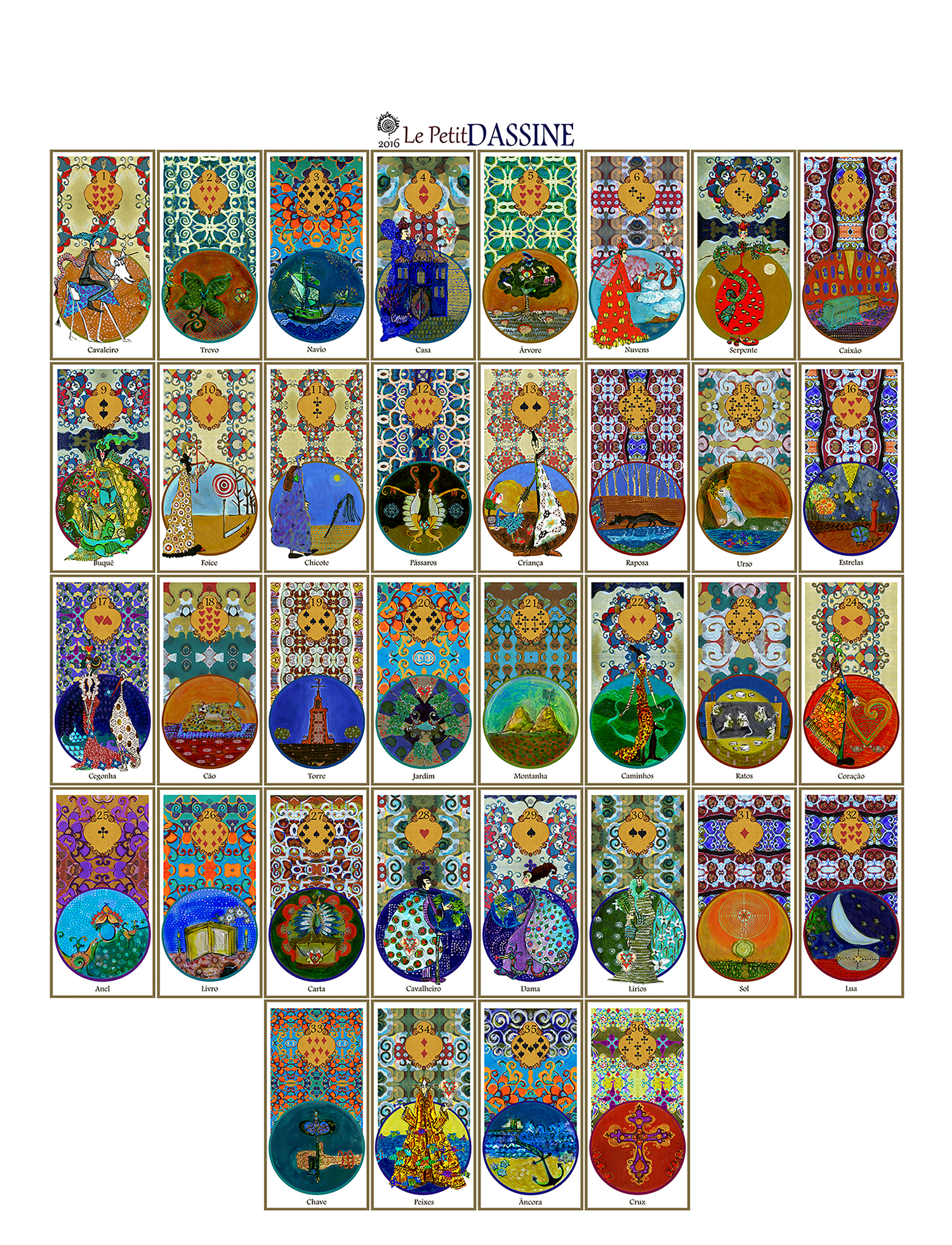 Desde 2007, venho desenvolvendo ações e instalações baseadas em memórias de sonhos oníricos e desejos em um projeto artístico chamado “Sonhos Mutantes”. A partir das experiências e percepções das pessoas que participavam dessas ações, surgiu a ideia de hibridizar sonhos e histórias com elementos da cartomancia, criando um recorte que permitisse dimensionar o que reverberava além das questões iniciais. Em 2011, inspirado no Le Petit Lenormand, um oráculo que remonta ao século XIX e através de um estudo em parceria com a pesquisadora em cartomancia Sonia Fariah iniciei a construção do Le Petit Dassine. As cartas foram ilustradas a partir das referências dos emblemas do Le Petit Lenormand as quais adicionei fragmentos de pinturas, desenhos e percepções de acordo com minhas vivências relacionadas a simbologia dos sonhos. Em 2016, apresentei este projeto ao público através da Exposição “Le Petit Dassine-Caminhos: Escolhas e Destino”, na Galeria Mônica Filgueiras, em São Paulo, SP e na Galeria Gamma, em Maceió, Al.
