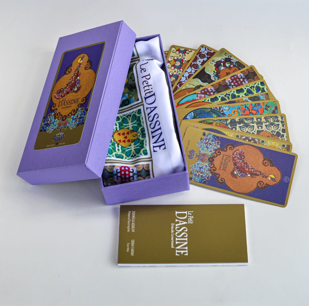 O Oráculo Le Petit Dassine é um objeto múltiplo, impresso em papel cartão a quatro cores e detalhes em dourado. O deck contém as 39 cartas, com dimensão 7 x 12 cm cada e acompanha um livreto de 92 páginas e lenço com impressão do Grand Tableau, para a realização das leituras.