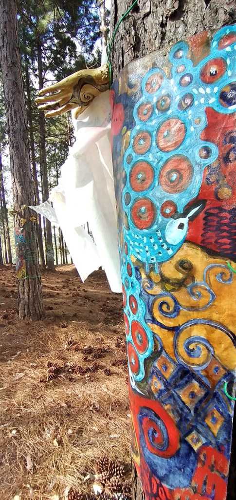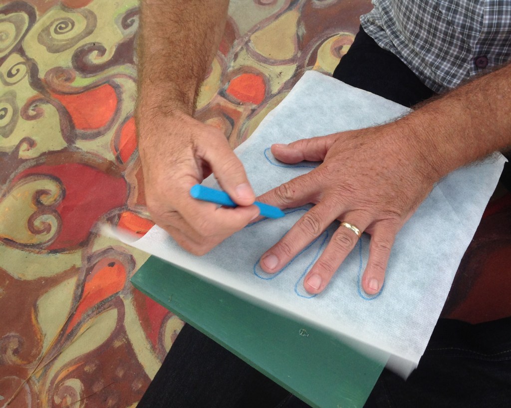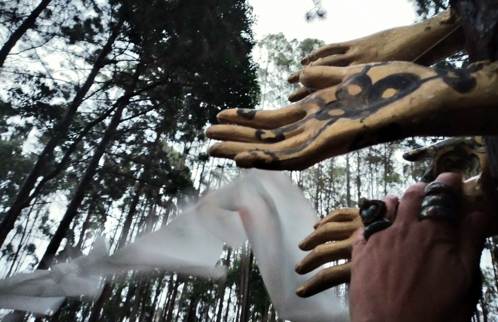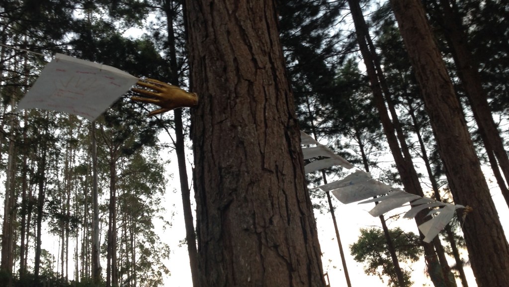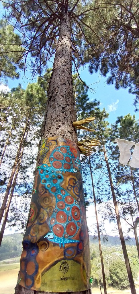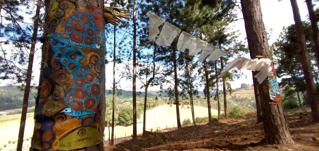 Um convite a entrar na obra – como um “tapete mágico” – decalcar a mão esquerda e escrever 3 palavras – o desejo do “agora”, para gerar códigos a formatar o futuro.