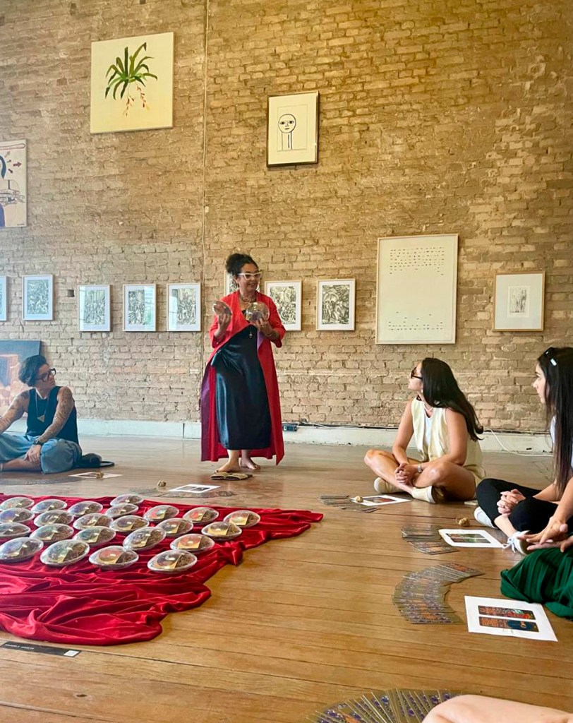 - Finalizando, a Artista irá abrir e ler 2 cartas para o grupo, representando a leitura de campo coletivo.